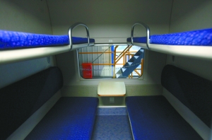 每節(jié)車廂被分割成10個獨立包廂,寬敞的包廂里上下鋪共有4張床位,每個床腳都有獨立電視,包廂門口還加裝了呼叫系統(tǒng)。將于本月21日首發(fā)的京滬、京杭臥鋪動車組,增加了大量人性化設(shè)計。昨日,本報記者提前上車探訪了這趟國內(nèi)最高級的臥鋪車。