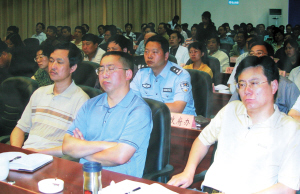 前天上午11點,記者來到科普畫廊前,找到了市民說的“睡覺照”。這是一組關(guān)于打擊非法傳銷的宣傳資料。資料包含了云南省各地打擊非法傳銷的成績展示。在這組展示中,有一幅“打擊傳銷專項行動電視電話會議”的圖片,從圖片上可以看出,這次會議是昭通市召開的。而在圖片正中間,有3人正襟危坐,中間一人雙手抱在胸前,眼睛卻是閉著的。就是這么一閉,就引來了多數(shù)市民的好奇和觀望?破债嬂忍幵谌顺奔械拇浜叄(jīng)過的市民很多,不少市民駐足在櫥窗前指指點點,議論著這幅圖片。