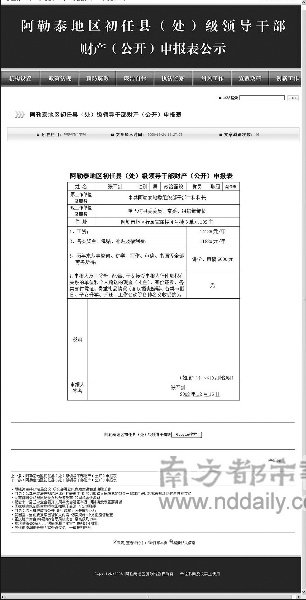 新年第一天,新疆阿勒泰地區(qū)的廉政網(wǎng)上,首批公布了55名新提拔正科和副縣級(jí)干部的財(cái)產(chǎn)申報(bào)資料。同一天,該地區(qū)啟動(dòng)了縣(處)級(jí)領(lǐng)導(dǎo)干部的首次財(cái)產(chǎn)申報(bào)工作。