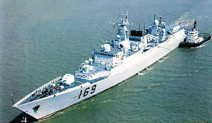 擔負赴亞丁灣、索馬里海域護航任務的指揮艦“武漢”號導彈驅(qū)逐艦,是我國自行設計建造的新型現(xiàn)代化導彈驅(qū)逐艦,舷號169,該艦長155.5米,寬17.2米,滿載排水量5000多噸。