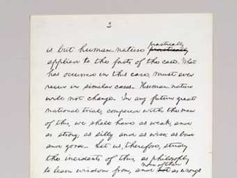 嘉士德拍賣行估計(jì)該手跡會(huì)拍出300-400萬美元,打破林肯個(gè)人文稿2002年創(chuàng)造的310萬美元記錄。嘉士德拍賣行認(rèn)為,現(xiàn)在林肯熱再次升溫多是因奧巴馬的緣故,因?yàn)閵W巴馬在總統(tǒng)競(jìng)選中常常提到林肯。(梁小逸報(bào)道)