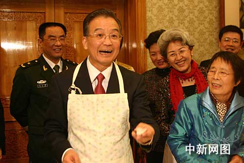 當(dāng)?shù)貢r(shí)間二月一日中午,正在英國(guó)訪問的中國(guó)總理溫家寶來到中國(guó)駐英大使館看望外交人員和華僑華人。他和大家一起包餃子,還風(fēng)趣地說自己包餃子的手藝很不錯(cuò)。中新社記者 張朔攝