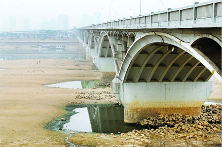 自2008年11月中旬至今,我省持續(xù)晴天少雨,江、河、湖水位不斷下降,湘江中下游水位連創(chuàng)歷史新低。2008年11月18日,湘江長(zhǎng)沙段出現(xiàn)有記錄以來(lái)的最低水位——25.15米,這也是近30年來(lái)湘江長(zhǎng)沙段的最低水位。長(zhǎng)沙市水文站表示,去年12月的一場(chǎng)大范圍的雨雪后,湘江水位一度回升到25.60米的歷史同期最高,但是由于今年1月降雨持續(xù)偏少,到目前湘江干流各控制站再次降至接近“死水”狀態(tài),長(zhǎng)沙站水位從1月25日開(kāi)始就在25.30米左右徘徊。