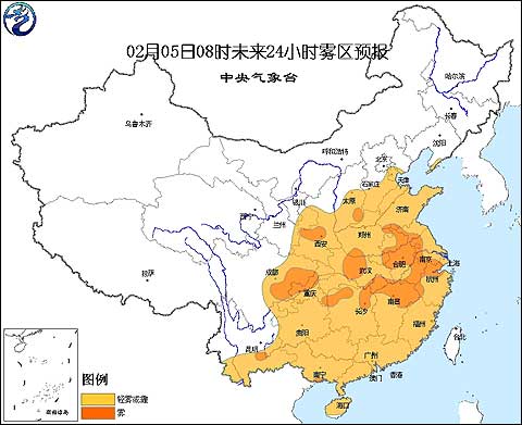 中央氣象臺2009年2月5日06時發(fā)布大霧預報: