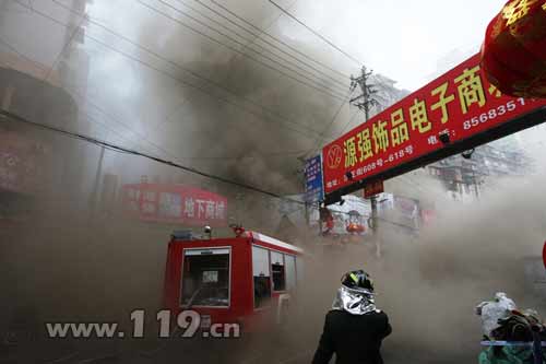 當日上午9時51分,武漢市119指揮中心接到火災報警后,立即調(diào)集21個消防中隊、79臺消防車、322名消防官兵趕赴現(xiàn)場進行撲救。發(fā)生火災的華貿(mào)商城為一幢9層商住樓,一樓為經(jīng)營門面、2樓和3樓為倉庫,4樓以上為居民住宅。