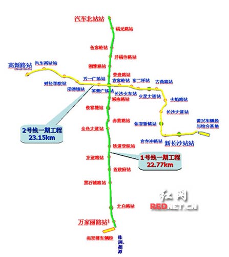 根據(jù)國(guó)家發(fā)改委批復(fù)的長(zhǎng)沙市城市快速軌道交通近期建設(shè)規(guī)劃,2008-2015年,首先建成軌道交通1號(hào)線一期工程和2號(hào)線一期工程。