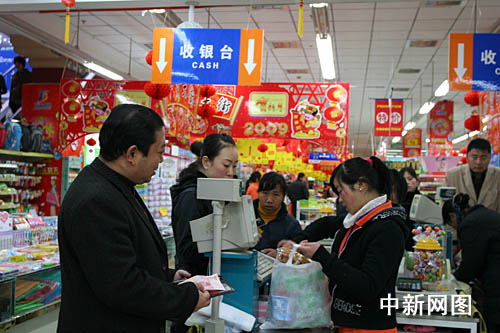 與收銀出口排著長(zhǎng)隊(duì)交款的年貨采購(gòu)人群比,超市進(jìn)門最顯眼的情人節(jié)專柜前則顯得有些冷清。只有一個(gè)藏族小姑娘在默默打理著柜前的巧克力和玫瑰花。記者問(wèn)她,“是不是受到金融危機(jī)的影響,情人們用節(jié)儉代替了浪漫,才使得生意沒(méi)有預(yù)期的火爆?”