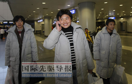 2月25日上午10點(diǎn),剛抵達(dá)北京首都國(guó)際機(jī)場(chǎng),這位獲救中國(guó)船員做的第一件事就是打電話給爸媽報(bào)平安,站在他身邊的是另外兩位獲救船員劉峰、宋進(jìn)。短暫的停留后,三位歸心似箭的山東老鄉(xiāng)又搭上飛往青島的航班。