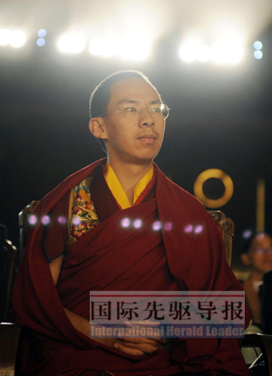 當(dāng)天下午,班禪與國家宗教局局長葉小文等人一起觀看大型音樂史詩情景劇《吉祥頌》,演出結(jié)束后,班禪在舞臺前方先后以藏語、漢語和英語說道,“我祈愿世界和平,佛祖保佑,六道眾生!毕愀邸洞蠊珗蟆吩u論稱,在本屆論壇上,年僅19歲的十一世班禪出人意料地頻頻亮相,成為備受各方矚目的“頭號明星”。