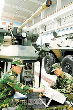 戰(zhàn)車上,戰(zhàn)士們正在細(xì)心地檢查每一部件,特別是對裝甲戰(zhàn)車的油路、電路和發(fā)動機(jī)等關(guān)鍵部位進(jìn)行反復(fù)調(diào)試。旁邊的一塊小黑板上,貼著一張記錄每臺戰(zhàn)車性能指標(biāo)和保養(yǎng)重點(diǎn)的表格。戰(zhàn)士白勝告訴記者:“別看是所有戰(zhàn)車同時保養(yǎng),要是哪臺車沒能達(dá)到保養(yǎng)規(guī)定要求,攝影頭會立即把信息反饋給保養(yǎng)綜合信息平臺!