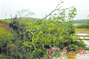 昨日凌晨,河源市東源縣順天鎮(zhèn)楓木、橫塘等5個山村不同程度地遭受到龍卷風、冰雹的突然襲擊,導致當?shù)卮笃r(nóng)田受災,數(shù)千株板栗樹被龍卷風摧倒,據(jù)當?shù)叵嚓P部門昨日下午統(tǒng)計,直接經(jīng)濟損失估計逾達860多萬元,所幸未造成人員傷亡。