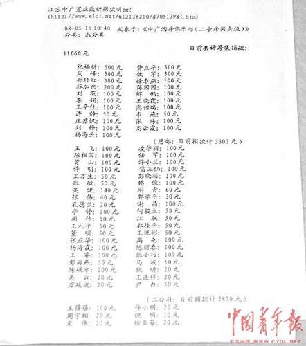 南京市紅十字會(huì)業(yè)務(wù)部長(zhǎng)李曉明告訴記者,捐款者有四種人:企業(yè)、企業(yè)員工、企業(yè)老總,還有匿名人士。去年地震后,南京市紅十字會(huì)接到大量捐款,但每一筆款項(xiàng)都會(huì)給對(duì)方開具以“江蘇省捐贈(zèng)專用收據(jù)”為臺(tái)頭的紅十字會(huì)發(fā)票,并可以此享受在計(jì)算繳納所得稅時(shí)全額扣除的優(yōu)惠。而且每一項(xiàng)捐款無(wú)論多少他們都一視同仁,逐條記載到該會(huì)網(wǎng)站中予以公示。他們查遍了所有的記錄,均未發(fā)現(xiàn)有“力聯(lián)集團(tuán)”、“翟韶均”等交來(lái)的捐款。