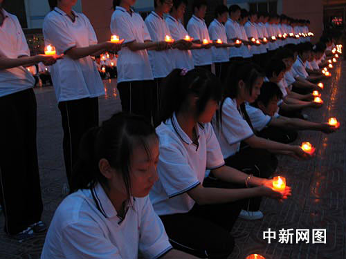 中新網(wǎng)隴南5月12日電 (記者 劉薛梅 張通飛) 11日晚上8點,隴南市第二中學校園內(nèi),660名學生點燃蠟燭組成了一個“燭光大道”,校門正前方的多媒體教室內(nèi),300支蠟燭構(gòu)成了一個巨大的心形圖案,里面用蠟燭寫著“512”、“2008”。這里正在舉行一場詩歌朗誦會,紀念地震一周年。