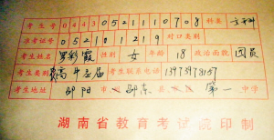 昨天,當(dāng)?shù)啬趁襟w向本報記者透露,現(xiàn)任邵東縣招考辦主任申曉云曾親口承認,羅彩霞是邵東唯一有兩份檔案的學(xué)生。