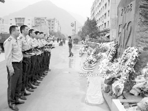帶著全體江西消防官兵的哀思,“重返戰(zhàn)場”的官兵們來到映秀鎮(zhèn)的遇難同胞公墓,獻(xiàn)上潔白的花圈,肅立脫帽,緬懷在地震中遇難的同胞。