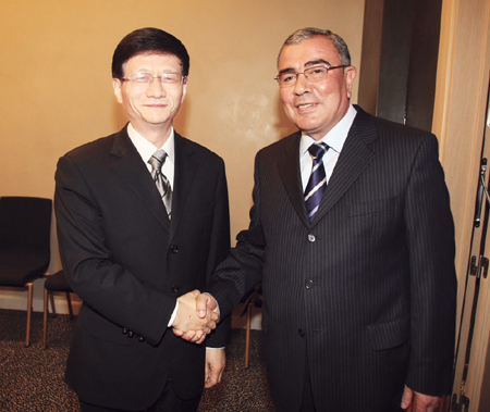 國務(wù)委員、公安部部長孟建柱5月18日下午在俄羅斯葉卡捷琳堡會(huì)見了烏茲別克斯坦內(nèi)務(wù)部部長馬特留波夫。