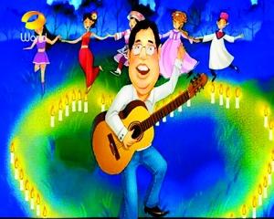 在這部類(lèi)似《功夫熊貓》山水畫(huà)風(fēng)格的卡通片中,趙小明露著門(mén)牙彈奏吉他,背景音樂(lè)是由美國(guó)著名鄉(xiāng)村歌手約翰·丹佛演唱的《Take Me Home,Country Roads》。
