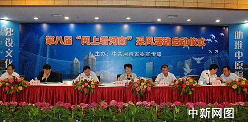 中新網(wǎng)5月25日電 5月25日,以“建設(shè)文化強(qiáng)省,助推中原崛起”為主題的第八屆“網(wǎng)上看河南”采風(fēng)活動(dòng)在河南省會(huì)鄭州啟動(dòng)。”來(lái)自50多家中央和地方重點(diǎn)新聞網(wǎng)站及部分知名商業(yè)網(wǎng)站的負(fù)責(zé)人和采編人員組成兩隊(duì)分別趕赴南、北兩線進(jìn)行采風(fēng),南線采訪平頂山、許昌、商丘、開(kāi)封4市,北線采訪洛陽(yáng)、焦作、鶴壁、安陽(yáng)4市。