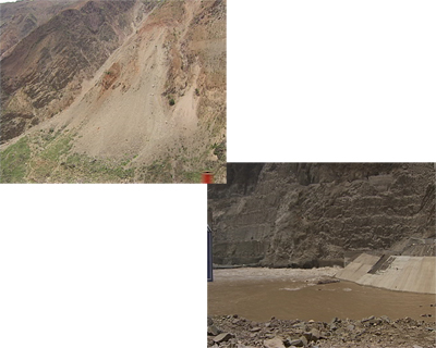 龍開口水電站于2007年9月開工,不到兩年的時(shí)間大壩已經(jīng)頗具規(guī)模。主壩開始澆灌水泥。金沙江從導(dǎo)流明渠穿過,原來的河道被截流用于建壩。