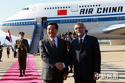 克羅地亞總統(tǒng)梅西奇親自到機場迎接,身著民族服裝的克羅地亞少年兒童向胡錦濤主席獻上美麗的鮮花,儀仗隊列隊向中國貴賓致敬。中國駐克大使吳連起率使館工作人員、中資機構(gòu)和留學(xué)生和華人華僑代表到機場歡迎胡錦濤主席。