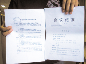 在《合伙協(xié)議》上,記者看到,除了明確合伙人為“丁××(丁某,記者注)、何文學、郝金山、趙秀文、沈新社”外,第一頁有“贊皇縣黃北坪選礦廠”公章,第二頁則有上述5人的簽名和手印!逗匣飬f(xié)議》議定:“《采礦許可證》屬合伙人共同所有,權(quán)益共享、責任分擔,合伙人同意丁某擔任本礦法人代表,保管各種證照!甭淇顣r間為2003年3月8日。