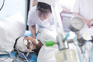 事發(fā)時,離廠區(qū)僅100多米的蔡夕好正在家門前空地睡覺,巨大的爆炸沖擊波將他從床上掀倒在地,腿部被飛來的流石擊傷,身后的卷閘門被氣浪沖得扭曲變形,他顧不得疼痛爬起來沖進房里救兒子,看到年僅13歲的兒子蔡士孟被碎玻璃劃得渾身是血。一位村民告訴記者,是廠子圍墻外的壩埂和樹林“救了我們”,阻滯了爆炸的沖擊波,要不然鄔崗新街的房子估計還要倒一大片,傷亡將更加慘重。