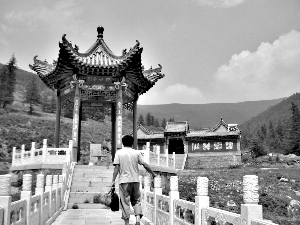 7月7日,穆新成籌資重建的古北臺寺,鮮有香客到來。藏經院門前,石碑上刻著“胸襟寬大條條都是大道,心意清凈處處都是凈土”———常悟說,這是穆新成的座右銘,三年前他讓人刻碑而立。