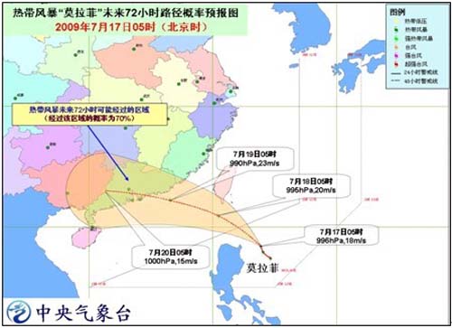 中新網(wǎng)7月17日電 據(jù)中國氣象局網(wǎng)站消息,7月16日晚,菲律賓呂宋島以東洋面的熱帶低壓加強(qiáng)為今年第6號(hào)熱帶風(fēng)暴“莫拉菲”(MOLAVE)。