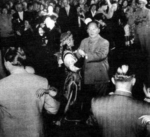 樂隊(duì)為毛澤東奏起的第一支曲子,通常是《瀏陽(yáng)河》。樂曲響起來,毛主席就帶著擠在最靠近他身邊的女同志,步入舞池,四周的人也紛紛隨之下場(chǎng),舞會(huì)漸漸進(jìn)入高潮。