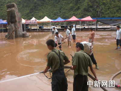 一到現(xiàn)場(chǎng),消防隊(duì)員就立即鋪設(shè)水帶。在專門消防器材的幫助下,消防隊(duì)員開(kāi)始對(duì)廣場(chǎng)淤泥進(jìn)行清理。經(jīng)過(guò)艱苦奮戰(zhàn),通往景區(qū)的道路被打通,布滿淤泥的桃花谷廣場(chǎng)終于煥然一新,又露出了昔日干凈美麗的“面龐”。 完