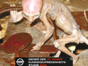 據(jù)德國《圖片報(bào)》8月24日報(bào)道,墨西哥電視臺近日公布了一條令人難以置信的消息,2007年5月在該國的一個(gè)農(nóng)場內(nèi),人們在一個(gè)動物陷阱里發(fā)現(xiàn)了仍然活著的外星人寶寶!
