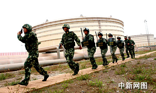 演練以“恐怖分子”在國慶期間預(yù)謀對曹妃甸中石化油庫實施爆炸、制造混亂為背景展開,駐曹妃甸邊防部隊在現(xiàn)場指揮員的統(tǒng)一調(diào)度指揮下,迅速集結(jié),對目標(biāo)地點進行武裝搜索、協(xié)同封堵、快速追捕、武裝攻擊、封控圍殲,迅速將“恐怖分子”一一抓獲。