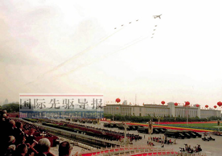 《國際先驅(qū)導(dǎo)報(bào)》記者于冬發(fā)自北京 “保持狀態(tài),加入模擬航線!”9月12日上午,華北平原某空軍機(jī)場,云翳低垂,薄霧輕繞,七架國產(chǎn)新型戰(zhàn)機(jī)呼嘯而起,直穿云霄。10月1日國慶節(jié)當(dāng)天,將在天安門上空接受祖國和人民的檢閱。
