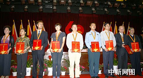 中新網(wǎng)武漢9月21日電 (記者 艾啟平)他們的殷殷鮮血曾經(jīng)染紅荊楚大地,他們的錚錚鐵骨曾經(jīng)激勵(lì)了一代又一代人……“新中國(guó)成立60年,功勛湖北100人”頒獎(jiǎng)大會(huì)9月21日在武漢隆重舉行。中共湖北省委書(shū)記羅清泉、湖北省委副書(shū)記楊松等出席大會(huì)并頒獎(jiǎng)。