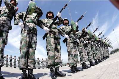 “啪!啪!啪!”提槍!握槍!劈槍!隨著洪亮的口令聲,預(yù)備役方隊隊員手中的八一式自動步槍,節(jié)奏分明、整齊劃一,瞬間以排山倒海之勢指向前方。在60周年國慶大閱兵中,預(yù)備役方隊是14支徒步方隊中唯一一支端槍受閱的方隊。