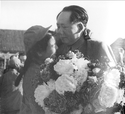 這位女文工團(tuán)員給毛澤東獻(xiàn)上鮮花、握手后,突然撲到毛澤東懷里,緊緊擁抱著,情不自禁地淚流滿面。那一刻,在場(chǎng)的所有人全愣住了。被打動(dòng)的毛澤東閉上眼睛,旁邊的呂厚民立即反應(yīng)過來,按動(dòng)快門,把這一感人的場(chǎng)面拍了下來。