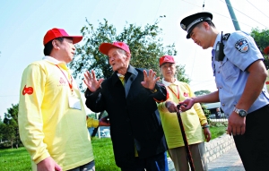 “奧運(yùn)會(huì)舉行時(shí),傅老就是治安志愿者!蔽鞑菔猩鐓^(qū)民警趙亮說,今年一聽說國慶安保也需要志愿者,傅漪泉老人一早兒就報(bào)名參加了。為了照顧老人身體,民警都沒給他固定崗位,但“老人常主動(dòng)在胡同里轉(zhuǎn)!壁w亮還表示,去年除夕傅漪泉老人夜里12點(diǎn)出來巡邏,發(fā)現(xiàn)西草市社區(qū)148號(hào)附近的堆積物上有火苗,趕緊回去告訴家人。家人立即通知趙亮處理,避免了一場(chǎng)火情。