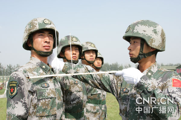“向右擺頭45度,帽檐前緣與眉同高!薄皟赡_分開60度,向前踢腿時,腳掌距離地面60厘米!薄跋蛴铱吹降卓词裁吹胤健边@組看起來枯燥乏味的數(shù)字 、簡單易學(xué)的動作,卻并不容易精確掌握做到,并直接影響著閱兵訓(xùn)練的全局(方隊的整齊一致)。