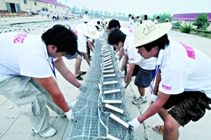 折疊后還是不行,一方面太沉,整幅網(wǎng)幕重4至5噸,故分成9小塊,每塊重500公斤;另一方面不能保證煙花毫發(fā)無傷,只要車顛簸,網(wǎng)幕還是會磕碰。
