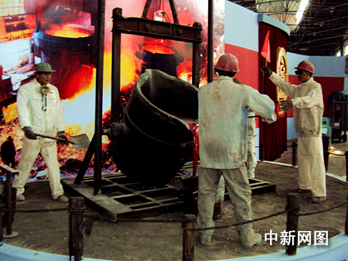 記者9月30日前往沈陽市鐵西區(qū)鑄造博物館采訪,那里不僅有第一枚國徽的模型,還有一組蠟像,形象生動地再現(xiàn)了當年鑄造工人制作第一枚國徽時的情景。
