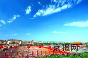 不經(jīng)歷風雨怎能見彩虹!似乎是對偉大祖國60年來走過的不平凡道路的真實寫照,慶典前的天安門廣場在經(jīng)歷電閃雷鳴后終于撥云見日,迎來湛藍的天空和燦爛的陽光。今天上午10時,廣場上空天高云淡,日朗風清,慶典典禮在良好的天氣條件下隆重舉行。