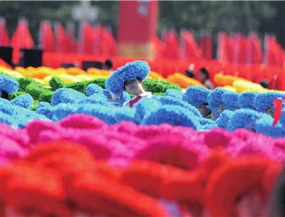 路建康說,他要感謝組成七色光方隊(duì)的1500名四、五年級(jí)的小學(xué)生們。這些孩子站在背景最前沿,離閱兵隊(duì)伍最近,他們組成了七彩花環(huán),寓意團(tuán)圓。游行結(jié)束,七色光方隊(duì)要涌向金水橋。