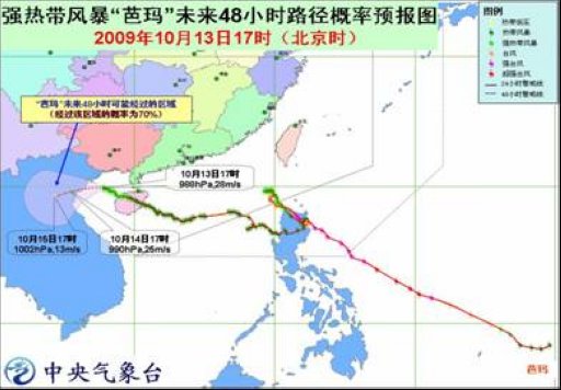 “芭瑪”的中心13日17時(shí)位于北部灣中部海面,就是北緯20.3度、東經(jīng)107.9度,中心附近最大風(fēng)力有10級(28米/秒),中心最低氣壓為988百帕。
