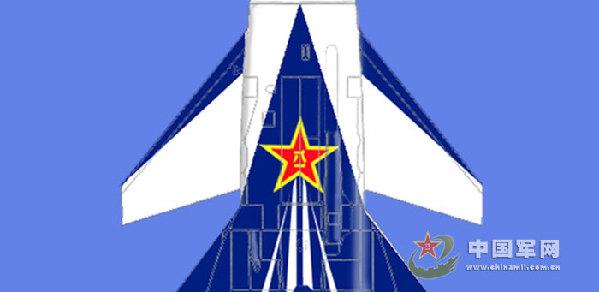 殲-10表演機軍徽由紅黃兩色組成,“八一”和五角星的邊框為黃色,其余部分為紅色,噴涂在機身腹部,共1處(見圖5、6)。