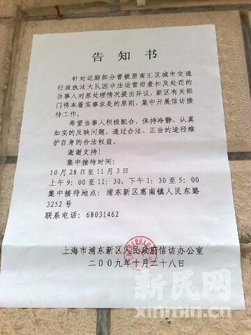 上海新民網(wǎng)今日透露以上信息。據(jù)報道,一份28日由上海市浦東新區(qū)人民政府信訪辦公室出具的告知書稱:“針對近期部分曾被原南匯區(qū)城市交通行政執(zhí)法大隊因非法運營而查扣及處罰的當事人對原處理情況提出異議,新區(qū)有關(guān)部門將本著實事求是的原則,集中開展信訪接待工作!
