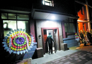 夜色還未褪盡,記者來(lái)到位于航天橋航天大院內(nèi)的錢學(xué)森靈堂外。位于一層的靈堂此時(shí)已是燈影幢幢,單元門外擺放的花籃、花圈并沒(méi)有被撤走,依舊簇?fù)碇睾蛟陟`堂門外。