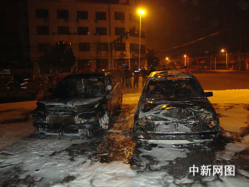 凌晨三點左右,明火被撲滅,但兩輛轎車已面目全非。
