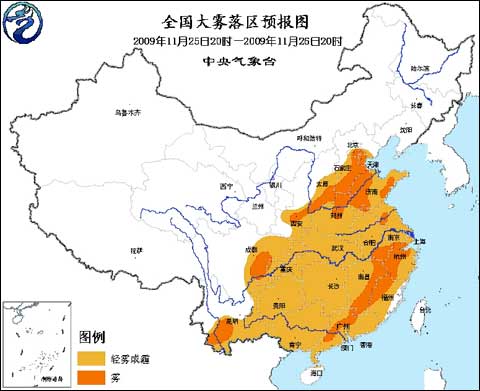 中央氣象臺25日18時發(fā)布大霧橙色警報: