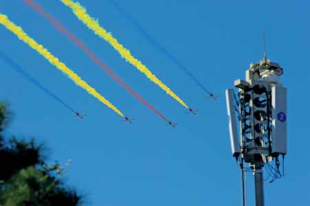 10月1日上午,國慶60周年盛大閱兵式在首都天安門廣場隆重舉行。11時20分,由我國首批殲擊機女飛行員組成的空中第十二梯隊,駕馭著15架教—8戰(zhàn)機,分3個楔形編隊飛臨天安門上空,在人們的歡呼聲中呼嘯而過,在空中留下道道絢麗“彩虹”,上演了一場精彩的閱兵壓軸大戲,向世人宣告我國成為世界上擁有殲擊機女飛行員的國家之一。閱兵后不久,中央軍委委員、空軍司令員許其亮,空軍政治委員鄧昌友簽發(fā)通令,為這個英雄群體記集體一等功。