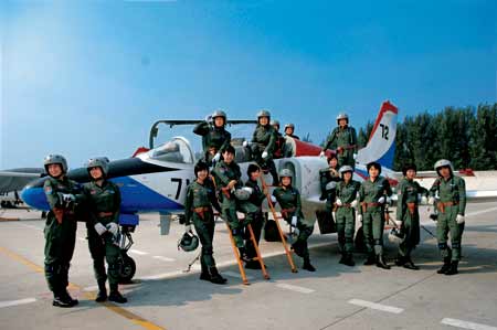 這個英雄群體共有16名殲擊機女飛行員,分別來自陜西、遼寧、河北、山東、山西、四川、江蘇、浙江、湖北9個省,最大24歲,最小22歲,是空軍2005年招收的第8批女飛行學(xué)員中的佼佼者。4年來,她們輾轉(zhuǎn)航空大學(xué)、兩所飛行學(xué)院,歷經(jīng)基礎(chǔ)教育、初教機訓(xùn)練、高教機訓(xùn)練3個階段,實現(xiàn)了從一名高中生到軍人再到女飛行員的人生飛躍。她們用堅韌、智慧克服了常人難以想象的困難,從仰望藍(lán)天到擁抱藍(lán)天并最終融入藍(lán)天。在她們身上,既承載著中國軍人的共同使命,也閃爍著自己特有的光芒。